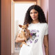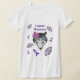 T Shirt mit meinen Illustrationen eines Wolfs, lila Schmetterling und lila Bänder, die alle Symbole von Lupus sind.