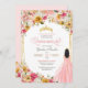 Quinceañera Einladung mit farbenprächtigen botanischen Blume in den Farbtönen Gelb, Rosa und Weiß Karo der Shop für diese Einladung mit Mädchen in verschiedenen Haarfarben und Hautfarben und mehr Variationen.