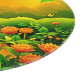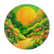Entdecken Sie eine lebendige, stilisierte Landschaftsdarstellung mit üppig grünen Hügeln, orangefarbenen Blume und Früchten, die im Glanz einer großen Sonne baden (Dieses Design aus KI). Bestellen Sie noch heute und Embrace the Joy of Shopping!