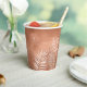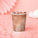 A trendy color palette in shades of terra cotta, copper and rust; sparkling geometric frames and elegant design layouts, provide the basis for this exciting wedding suite. Whether you're planning a destination wedding or staying close to home, this delicate palm leaf design set makes an eye-catching choice. The coordinating paper cup shown here on a terra cotta background, provides a template to easily add your initials, names and wedding date. Search ID956 to see other pieces and color choices for this set.