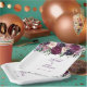 Aquarellfarbene Blume in kräftigen Bordeaux-Farbtönen, sanfte Lilie, lila und rosa Orchideenpaare mit modernen grünen Botanicals wie Farne und Eukalyptus in diesen romantischen, eleganten Hochzeitspapier-Tellern.