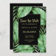 Ihre Hochzeitsgäste werden sich nach dem Empfang dieser wunderbar eleganten Hochzeitskarte "Save the Date" mit üppigen tropischen Blätter und Palmenfronten, die einen rechteckigen Rahmen umgeben, mit Spannung freuen. Es ist eine fantastische Wahl für eine Hochzeit am Strand, Hochzeit in Urlaubsort, Hochzeit oder Hochzeit mit einem tropischen Thema. Personalisieren Sie den Text in der Designvorlage mit Ihren Daten. Die Rückseite der Karte ist schwarz. Sie können auf der Rückseite zusätzliche Texte hinzufügen, wenn Sie möchten (z. B. Ihre Website zur Hochzeit oder irgendeinen anderen Text, den Sie hinzufügen möchten). Wählen Sie einfach "weiter anpassen", nachdem Sie die Kartenvorderseite personalisiert haben.