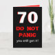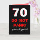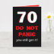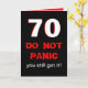 Diese 70. Geburtstagskarte des lustigen Meilensteines ist gerade für Männer. Die Karte kennzeichnet großen 70 im Weiß mit roten Rändern auf Schwarzem. Die Wörter "VERSETZEN NICHT" erscheinen unter den 70 mit "Ihnen got sie noch" als Nächstes in Panik. Innerhalb der Karte ist das lustige, zum einer großen 70. Geburtstagskarte für den Mann mit einer Richtung des Spaßes zu machen. Copyright Kathy Henis