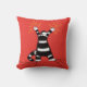 Lustiges elektrisches Katzenkissen mit einer sonderbaren Charakterillustration einer merkwürdigen flaumigen Katze mögen Geschöpf mit Schwarzweiss-Pelz, der die Elektroden hat, die auf seinen Zehen gerissen werden und Strom durch sein überreicht vibrierenden roten Hintergrund ausstrahlt. HochspannungsSpaß.