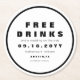 Senden Sie diese einzigartigen und lustigen Untersetzer "der freien Getränke" Save the Date zur Familie und zu den Freunden aus, um sie für Ihren wichtigen Tag Save the Date zu machen. Die Ausrüstungsbeschreibungen schwärzen den Ring, der moderne Typografie umgibt. Personifizieren Sie den Entwurf, indem Sie den Text ersetzen.