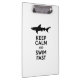 Lustige Haifisch-Warnung - behalten Sie Ruhe und Klemmbrett