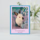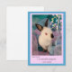 Diese lustige Grußkarte ist eine hervorragende Möglichkeit, Hasenfreude zu verbreiten. Dies ist eine flache Grußkarte mit einem Foto unseres Kaninchens Benjamin auf der Vorderseite und dieser Nachricht: