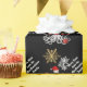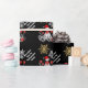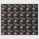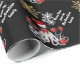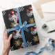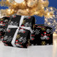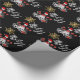 Festlicher personalisierter Weihnachtsfeiertags-Verpackungspapierentwurf mit weißes Goldwinterschneeflocken und schwarzem kundengerechtem Hintergrund und eine lustige gotische steampunk Krake kraken Sankt mit Weihnachtsgeschenken. Personifizieren Sie diesen Entwurf, indem Sie Ihren Familiennamen addieren, oder Weihnachtstext, der BITTE grüßt, MERKEN das Gold ist nicht metallisch