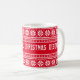 OCD besessene Weihnachtsstörungs-Kaffee-Tasse. Personalisierte hässliche Tasse des Weihnachtsstrickjacke-Musters 11oz für Kaffee, Tee oder heiße Schokolade. Lustige Weihnachtsfeiertags-Party-Geschenkidee für trendy Männer, Frauen und Kinder. Rote oder grüne oder kundenspezifische Hintergrundfarben. Niedlicher cozy nordischer strickender Entwurfs-Trinkbehälter für Zuhause oder Büro. Auch verfügbar als große übergroße Schale und große Reise, zum zu gehen Tassen. Addieren Sie Namen, Monogramm, Frohe Festtage oder lustiges Zitat. Frohe Weihnachten! Vintage Typografiebuchstaben.