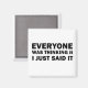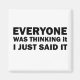 Wenn Sie lustige sarkastische Zitate oder großartige humorvolle Entwürfe mögen, ist dieser ursprüngliche Slogan" jeder dachte, es habe ich gerade gesagt, es ist für Sie. Es ist ein ausgezeichnetes Geschenk für Ihre Familie, Freunde oder Sie selbst! Dieses Design ist ideal für alle, die Sarkasmus und Spaß Lieben. Wenn Ihnen dieses lustige Zitat gefällt, Karo mehr ähnliche Kunstwerke im Auslassladen. Bleibe sicher und danke für die Unterstützung eines lokalen Künstlers.