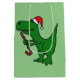 Wunderbarer Dinosaurier des Spaßes Tres Weihnachtsmannmütze-Weihnachtsin der ursprünglichen Kunst-Geschenktasche. Kann kundenspezifischen Text auch addieren und Hintergrundfarbe bei der Einrichtung ändern.