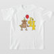 Niedlicher und lustiger Affe, der einen Geburtstagshut hält eine Banane und einen roten Ballon stehend nahe bei einer enormen Nr. 4 auf vierten Geburtstags-T - Shirts, -Hoodies, -knöpfen, -aufklebern, -Taschen und -mehr trägt.