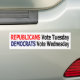 Republikanerabstimmung Dienstag, Demokrat-Abstimmung Mittwoch. Egal was Party, das Sie Ihnen gehören, großes Lachen erhält.