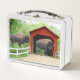 Lustiger Büffel an der roten überdachten Brücke Metall Brotdose