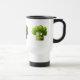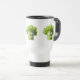 Lustige Brokkoli-Tasse mit einer lustigen Illustration eines Cartoonbrokkolicharakters mit verwirrtem Anstarren und der gehafteten heraus Zunge. Diese Cartoonbrokkoli-Tasse macht ein reizendes Geschenk für jemand, das Liebebrokkoli und -c$kochen.