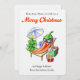 Würzen Sie jemandes Saison mit dieser lustigen und festlichen Weihnachtsgrußkarte im Format 5x7, die einen handgezeichneten, Cartoon-Chili-Charakter zeigt, der sein bestes Weihnachtsferienleben lebt! Dieser süße, schelmische Pfeffer räkelt sich auf einem Sonnenstuhl unter einem Strandsonnenschirm, schlürft ein Getränk mit einem frechen Partygrinsen. Der linke Ellbogen des scharfen Kerls ruht lässig auf einem eingepackten Geschenk, während eine spiegelglatte Sonnenbrille die warme Strandsonne reflektiert - und den winzigen, geschmückten Tannenbaum mit seinem hellgelben Stern direkt neben ihm ignoriert. Ein fettes rotes Kopfzeilen-Grußwort lautet "Frohe Weihnachten", mit leicht zu bearbeitendem Platzhaltertext, um die Karte mit dem Namen des Adressaten zu personalisieren. Unter dem Kunstwerk können Sie die Zeile "und schöne Feiertage" anpassen, um Ihre eigene fröhliche Botschaft zu erstellen. Unten können Sie einfach den Platzhalternamen der Familie bearbeiten
