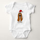 Niedlicher und lustiger Dachshundjagdhund-Welpenhund in einem roten Weihnachtsmann-Hut Weihnachtsentwurf macht einen Spaß einzigartiges Geschenk. kann kundenspezifischen Text auch addieren und Hintergrundfarbe bei der Einrichtung ändern.