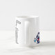 Lustiger durstiger Fußball, der ein kaltes Wasserg Kaffeetasse