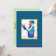 Er tut alles, an das Party zu gelangen; Sogar Furt durch einige Füße Schnee. Humorvolle Party Einladung mit blauem Hintergrund auf dem vorderen und das grün auf der Rückseite. Fügen Sie Ihr Partyinfo an zurück unterhalb des Text-Sprichworts hinzu: "Verbinden Sie uns so: " Bunt und Spaß!