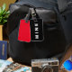 Lustiger schwarzer und roter Gepäckanhänger mit "dem Bergwerk" geschrieben auf es