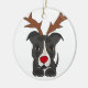 Lustiger grauer Pitbull Hund als Weihnachtsren Keramik Ornament