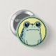 Cute runde Knopf/Stecknadel von lustigem grünem Cartoon-Frosch mit großen Augen und einem toternsten Gesichtsausdruck auf gelbem und grünem Hintergrund.
