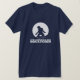 Einfaches Weiß auf dem schwarzen Entwurf, der ein sasquatch Schatten-Silhouette infront eines Vollmonds mit mutigem, Spaßtext entlang der Unterseite zeigt. Gehen Bigfoot-Jagd, gerade wie Bobo.