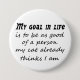 Lustiger Katzenzitatslogangeschenk-Neuheits-Spaß knöpft. Mein Ziel im Leben ist, von einer Person so gut zu sein, wie meine Katze bereits denkt, dass ich bin. Karo heraus Wisecrack Speicher für mehr Witzzitate auf allen Arten Produkte.