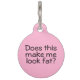 Dieser lustige personalisierte Identifikations-Haustierumbau sagt, "tut dies lassen mich fett schauen?" Sie können die Schriftartart ändern oder färben, wenn Sie wollen.