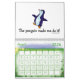 Lustiger Pinguin-Kalender. Jede Seite hat ein anderes Bild/einen Cartoon von Penguins mit lustigen Sprüchen. Garantiert, um ein Lächeln auf Ihr Gesicht zu setzen und Sie jeden Monat des Jahres lachen zu lassen. Der Text kann geändert werden/besonders angefertigt werden. So voran gehen Pinguinliebhaber, personifizieren einen Kalender, den Sie das ganze Jahr hindurch genießen.