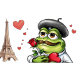 Überraschen Sie Ihr Valentin mit einem zauberhaften französischen Frosch, der Ihr Herz gewinnen kann! Mit einer Rose in der Hand und dem Eiffelturm im Hintergrund, dieser Cartoon Frosch ist sicher zu amüsieren und zu bezaubern! Ideal für diejenigen, die gewollt haben, eine Touch Spaß und Romantik für den Valentinstag hinzuzufügen!