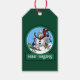 Ein niedlicher Schneemann auf Geschenkanhängern für Weihnachten. Verwenden Sie "Diesen Entwurf anpassen", um den Text "Frohe Weihnachten!" zu ändern und ein einzigartiges, maßgeschneidertes Produkt zu erstellen. Fügen Sie Ihren Weihnachtsgeschenken mit diesen Anhängern, die einen Cartoon eines fröhlichen Schneemanns mit Karottennase und Kohleaugen zeigen, der auf Skiern durch den Schnee rast, mit wollener Wintermütze und Schottenmuster-Schal, den letzten Schliff hinzu. Ein aufmunterndes Design für Weihnachten.