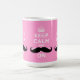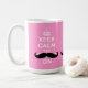 Rosa, schwarzer Schnurrbart auf Keep Ruhe und machen Slogan mit ursprünglichen britischen Kriegs-Plakatgraphiken auf einer Tasse weiter. Elke Clarke ©2012. Eine lustige Spaß-Tasse macht ein großes motivierend Geschenk für die gleichschnurrbartliebhaber und Schnurrbartträger. Für andere Farben treten Sie mit Geschäftsinhaber in Verbindung.