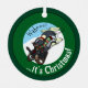 Ein lustiger Skunk auf einem Weihnachtsbaum-Schmuck. Verwenden Sie "Diesen Entwurf anpassen", um den Text "Wahoo! ...es ist Weihnachten!" anzupassen und ein einzigartiges, individuelles Design zu erstellen; Textänderungen werden auf beiden Seiten angezeigt. Ein niedlicher Skunk, warm eingepackt in eine wollene Mütze und einen Weihnachtsschal, schlittert einen Hügel hinunter und hinterlässt eine verrückte Skunk-Duftspur. Ein originaler Weihnachts-Cartoon für die festliche Wintersaison.