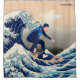 Lustiger Surfer, der auf die Hokusai große Welle Duschvorhang