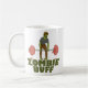 Wenn Sie ein Zombiebüffelleder sind, das Ihr Zombiebüffelleder mag, dann ist dieses der humorvolle Entwurf für Sie. Dieser untote Strongman kann Gehirne wie niemanden anheben Geschäft. Im Entwurf hebt er die Gewichte an, die von den Gehirnen gemacht werden. Er erscheint auf beiden Seiten von dieser Tasse.