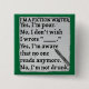 Wenn Sie ein Fiktionsverfasser/-autor sind, haben Sie wahrscheinlich alle Fragen gehört, die auf diesem Entwurf des lustigen Papiers beantwortet werden. Jetzt können Sie Zeit retten unterhalten mit den Rucken, die diese inane Fragen fragen, indem sie die Antworten auf diesem Knopf tragen. Das bedeutet mehr Zeit, damit Sie sich heraus in Ihrem Bürolager verstecken und die durchmogelnden Charaktere schreiben, die auf diesen Possenreißern basieren. Der Knopf zeigt eine schwache, grauliche Notizbuchseite und einen Stift mit diesen Wörtern: Ich bin ein Fiktionsverfasser. Ja bin ich arm. Nein, wünsche ich nicht, dass ich schrieb "_." Ja beachte ich, dass niemand mehr liest. Nein, bin ich nicht betrunken.