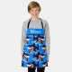 Diese personalisierte, spielerische Cartoon-Hai-Schürze zeigt einen freundlichen, aber zahnigen Weißen Hai mit einem charismatischen Grinsen, vor einem strahlend ozeanblauen Hintergrund mit stilisierten weißen Wellen.