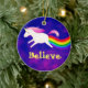 Lustiges Farting Fliegen-Einhorn ein Regenbogen Keramikornament