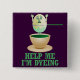 Dieser lustige Ostern-Entwurf zeigt ein Osterei, das in einen Saucer der grünen Färbung mit einem erschrockenen Blick auf seinem Gesicht und seinen Armen in der Luft eingetaucht wird. Der Text sagt, "helfen Sie mir. Ich färbe." Dieses ist ein humorvoller Cartoon für jedermann, das Wortspiele Ostereier malen mag alberne und Lieben.