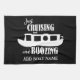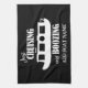 EINFACH FAHREN UND SÄUFEN. Lustiges Zitat auf einem Teatowel für Kanalboote. Bearbeiten Sie den anpassbaren Text, um den Namen Ihres Bootes hinzuzufügen