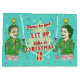 Zeit zu erhalten leuchtete wie ein Weihnachtsbaum! Dieser humorvolle Feiertagsentwurf zeigt eine retro Frau und einen Mann, die wie Bäume mit den Lichtern gekleidet wird, die um sie, Sterne auf ihren Köpfen und den Mistelzweig verziert ihre Shirts aufgereiht werden. Oh und Getränke in ihren Händen, selbstverständlich. Diese lustige Grafik schließt auch Flitter, Schneeflocken und Lose und Lose Weihnachtsgeist mit ein (und Geist). Der Hintergrund ist Aquablau mit einem karierten Licht.