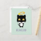 Lustiges Wortspiel-schwarze Katze mit einem Postkarte