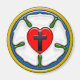 Die Symbolik der Luther-Rose stammt aus den 1520er Jahren. Luther erklärte, dass das rote Herz mit dem schwarzen Kreuz das rechtschaffene Leben durch den Glauben an Christus, den Kruzifizierten repräsentiere. Das Herz Erholungen auf einer weißen Rose, symbolisiert Freude, Komfort und Frieden, die durch den Glauben gefunden wurden. Die Weiß-Auswahl spiegelt die Farbe himmlischer Geister und Engel wider. Die weiße Rose ist Set gegen ein blaues Feld, das den Himmel repräsentiert, um zu signalisieren, dass irdische Freude und Glaube nur der Anfang ewiger himmlischer Freude sind. Um das blaue Feld herum ist ein goldener Ring, der das endlose und wertvolle Glück des Himmels symbolisiert.