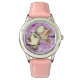 Kinderuhr aus Edelstahl mit rosa Lederarmband