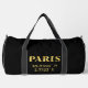 Lux Look Reise duffel Tasche zeigt Paris, Frankreich Breiten-und Längengrad-Koordinaten Karte Koordinaten in Gold Text auf schwarzem Hintergrund.