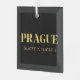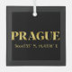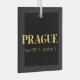 Die Glam Weihnachtsschmuck-Koordinaten der Breiten- und Längenkarte Prag, Tschechische Republik, werden vertikal in goldenen Schriftart auf schwarzem Hintergrund dargestellt.