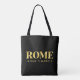 Die Lux Tote-Tasche enthält die Koordinaten der Rom-, Italienischen Breiten- und Längenkarte in goldenen Schriftart auf schwarzem Hintergrund.