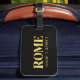 Stilvolle Gepäckmarke zeigt Rom, Italien Längen- und Breitengradkoordinaten in goldenen Schriftart auf schwarzem Hintergrund.