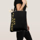 Die Lux Look Tote Tasche zeigt die Längen- und Breitengradkoordinaten der Stadt San Francisco, die vertikal in goldenen Schriftart auf schwarzem Hintergrund platziert sind.